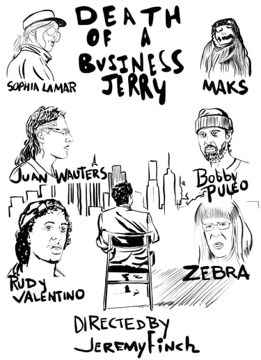Business Jerry is done with the business of life. Working at a cafe and music venue in Brooklyn feels like spiritual death. Each night Jerry returns home to confide in his dog Linda. As Jerry tries to keep his band together, PRIIVLEGE, a menacing media start-up wants to appropriate all the New York venues, and life itself, into it’s brand. The only hope for Jerry and Linda is the natural world. Can Jerry and Linda escape the grip that PRIIVLEGE now has on New York City, or will Jerry sign away their lives altogether? Shot on miniDV mostly in Ridgewood and Bushwick, DEATH OF A BUSINESS JERRY features a large community of artists including Juan Wauters, Sophia Lamar, Masma Dream World, Bobby Puleo, Trouble Troupe, Timewolf Deluxe, Mysterease, Sage Sovereign, Champdope, Yairms and more.
